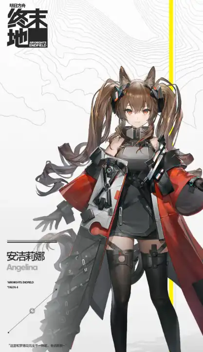安洁莉娜是一位被外派到终末地的干员,她有着出色的作战天赋,开朗乐观的性格,但对于未来她会怀抱着一点点的忐忑,她的终结技可以跳跃到空中,随后发射多把长枪,对周围敌人形成伤害加成,同时这招有一定脉冲效果,会对周围敌人也形成一定的冲击伤害。
