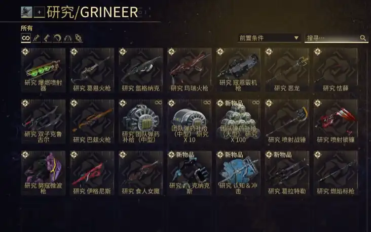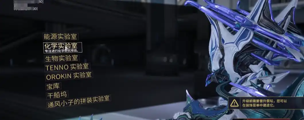 能源实验室里面有非常多的武器,化学实验室当中配备的同样是武器相关的,其次是生物实验室,主要是研究武器和守护的地方,这几个实验室中只要获取了对应的蓝图,就可展开研究了;TENNO实验室中主要进行战甲的研发,还有一些基础武装项目的研究。