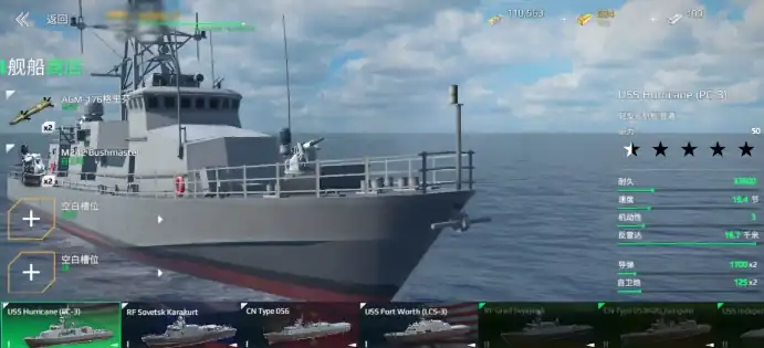 056型护卫舰是中国的一级船代表,其最大的特点是装备了直升机和全面的武器配置,主炮为HPJ-26,单发伤害达到1050,炮弹投射量为三连发。此外,还配备了长剑导弹,对敌方战舰和地面目标都有较好的打击效果。价格相对较高,但其全面的武器配置和较高的伤害值使其在多任务操作中表现出色。