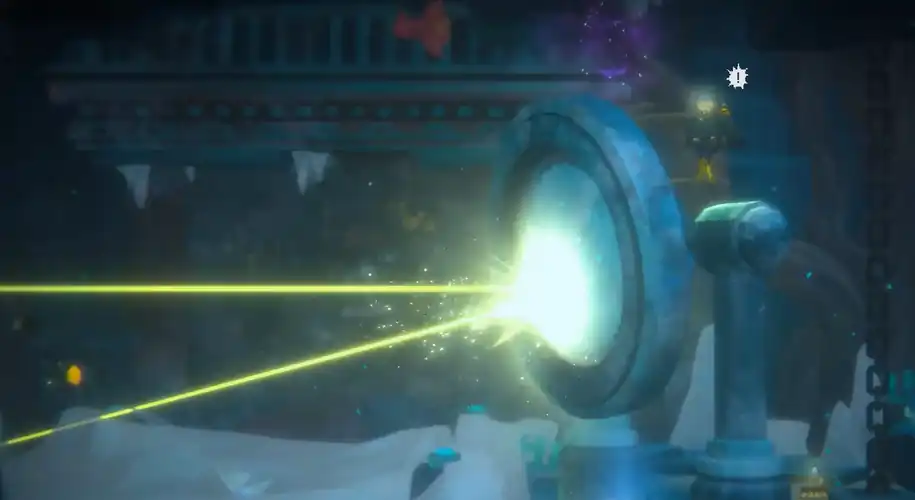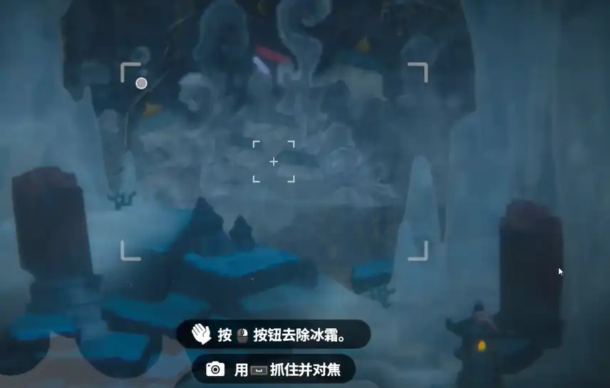 拿到撬棍后,来到巨大的镜子旁边,会看到有一堆石头挡住镜子的角度。用撬棍把石头撬开,光线会射到镜子上。如果发现光线没有射过来,可能是左边的机关还没启动。游到左侧,启动机关让光线正常工作,然后再回来继续调整镜子。解锁光线后,会拿到一台相机。这时镜头看起来有些模糊,但你不需要完全清理干净,只要把中间的区域抹干净就可以了。之后对准目标拍张照,解锁后续关卡。