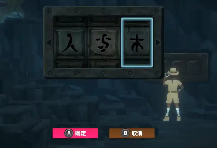 要找出密码并不难。首先,注意观察洞穴中的三幅壁画。每幅画上都有一个红色的符号,分别是“人”、“水”和“木”。这些符号非常明显。其次,记住壁画的排列顺序。它们的顺序实际上就是密码的输入顺序,只需从左到右依次记下来即可。最后,站到密码锁前,按照壁画提示,依次输入“人、水、木”,门就能顺利打开了。