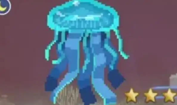 最后,我们来到第三潜水点:水母流域,它位于寿司店后方的发光珊瑚礁区域,对应Dredge的斯特拉尔湾。在这片海域里,光怪陆离的水母和其他深海生物占据主导地位。比如海月水母,它们数量庞大,仿佛是一支深海的入侵军。幻日水母则自带光效,从伞状体中发出两束诡异的光芒。而发光鱿仿佛是深海的灯塔,在黑暗中散发微弱却迷人的光。更危险的还有撕咬狮子鱼,它的外形散发出令人恐惧的压迫感,裸露的牙齿随时准备咬断猎物。