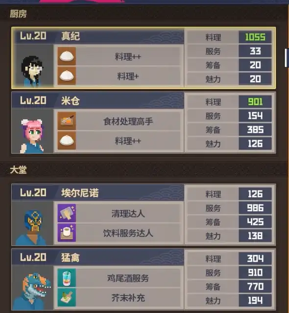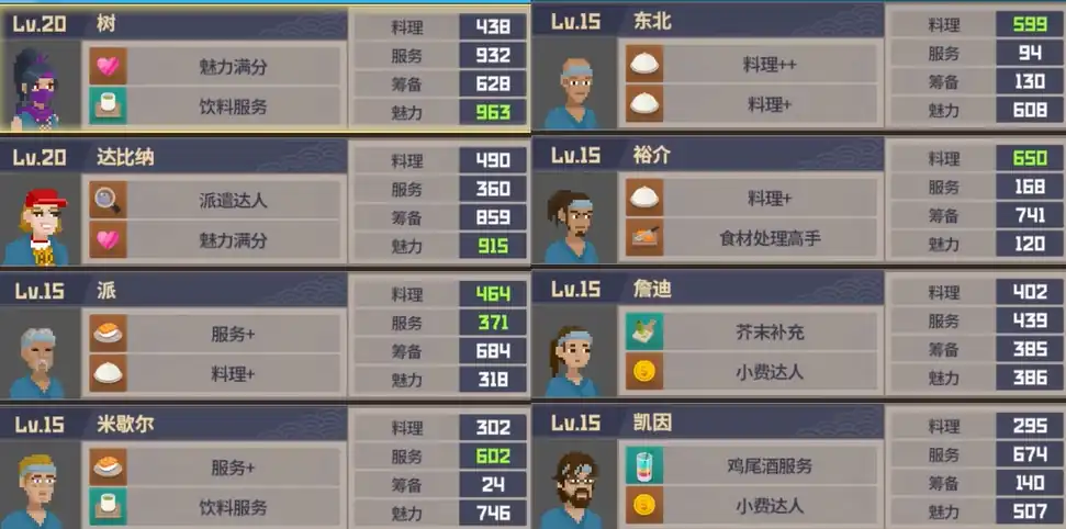 另外,如果团队已经很稳定了,也可以适当减少招聘和迁移的频率。毕竟频繁更换员工不仅耗费资源,还会打乱寿司店的正常节奏。在玩游戏的过程中,时刻关注团队的整体实力,找到最优的配置,才能让你的店铺经营得更高效、更轻松。