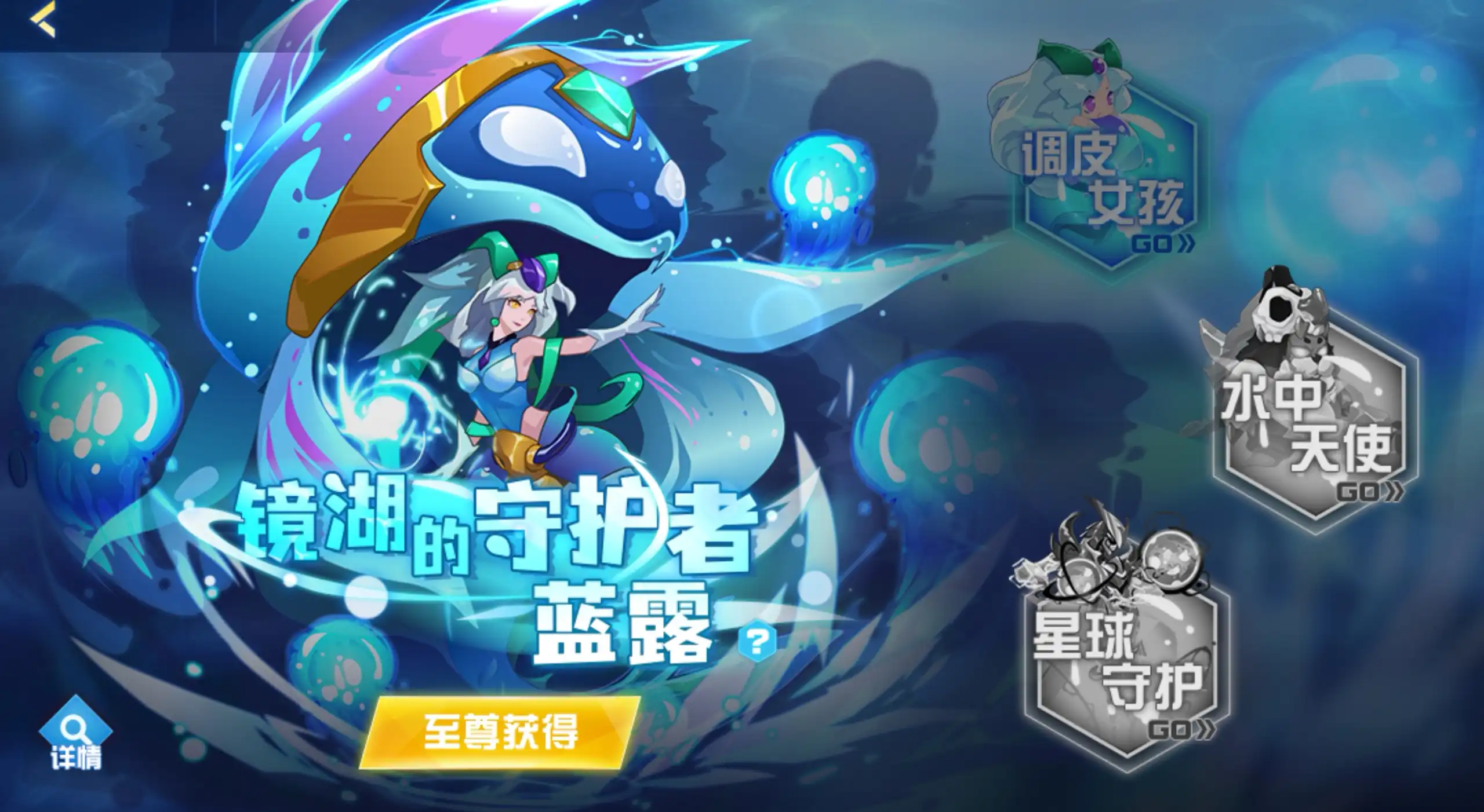 蓝露的获取办法也不算很难,玩家只需依次完成调皮女孩、水中天使和星球守护这三个任务,即可得到蓝露,期间需要挑战各式各样的BOSS,如果过程中卡关了,就需要去改善一下当前的阵容,等到战力足以击败守关BOSS时,再去进行挑战。当你按顺序全部通关后,不仅能得到蓝露这个角色,同时还能获取一个经典形态皮肤。