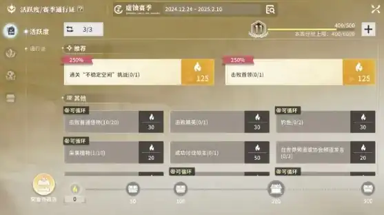 此外,每日任务中部分目标可以循环完成,例如每日登录游戏、参与指定活动等,这些目标不仅容易达成,还能持续为玩家带来活跃度的积累。活跃度进度在每日05:00重置,以确保每个玩家都有公平的机会获得奖励。单周活跃度上限为6000,当玩家的活跃度达到50、100、200、500时,可以领取相应的额外奖励,这些奖励可能包括游戏货币、稀有道具和装备等。