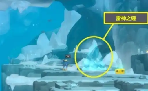 不过需要注意的是雷神之锤的位置并不是固定的,除了上面跟大家分享的位置之外,还有可能出现在其他的区域,就比如在左侧的冰冻里也有可能出现雷神之锤,需要在海里仔细探索搜寻,覆盖雷神之锤的冰块相对会比较通透,色调也会偏蓝一些,会和游戏里偏白的冰块有所区别,要在探索的时候仔细观察。