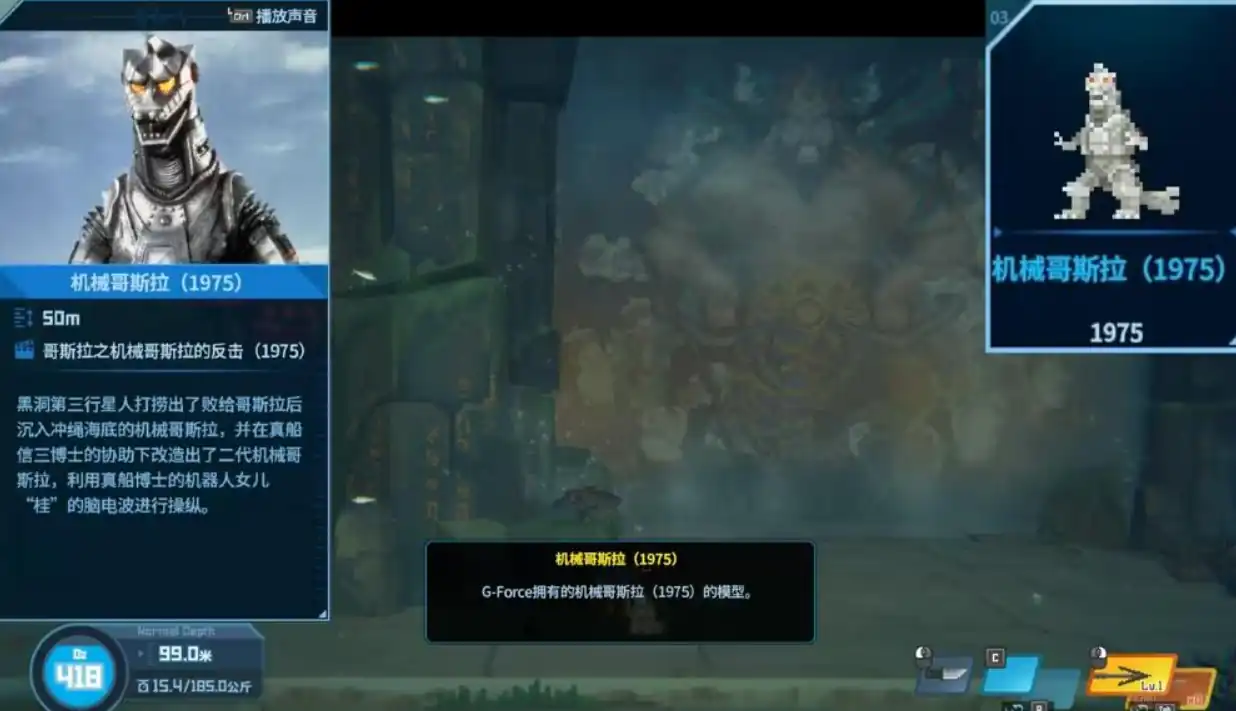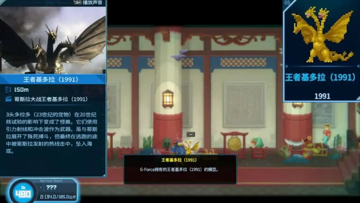 接下来是迷你拉的模型,它就在冰河区域的首个冰河洞窟内,在金龙雕像右侧。这个地方是冰鳐BOSS的战斗区域,环境有些复杂,容易让人迷路。不过,只要留意金龙雕像附近,你就不会错过它。至于哥斯拉1995(红莲),它的模型就藏在深海区僵尸鲛人监狱门口,也就是哥斯拉初登场的位置。
