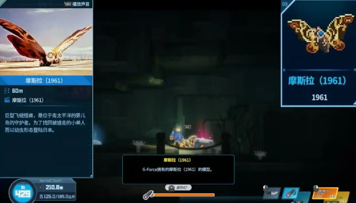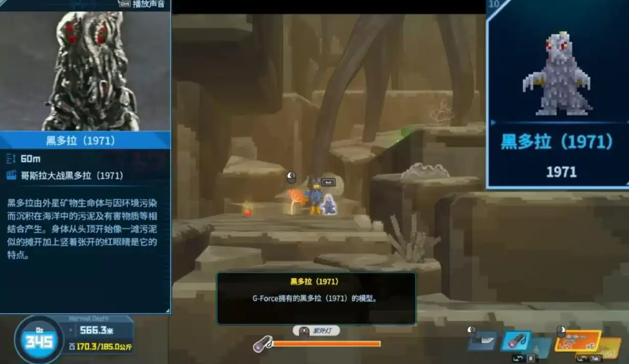 摩斯拉的模型藏在深海区右侧深海湖,也就是哥布林鲨BOSS战场景的入口处。摩斯拉总是自带一种优雅的气质,而它的模型位置也很符合这个设定,在深海湖的入口慢慢找找,就能发现它的存在。而黑多拉的模型则位于热液喷出区域右侧的深谷底部,靠近第三冰河洞窟的门外。这片区域的滚滚浓烟可不好对付,建议你备足氧气和装备,沿着深谷一路下潜,直到洞窟门口,黑多拉模型正等着你去探索。