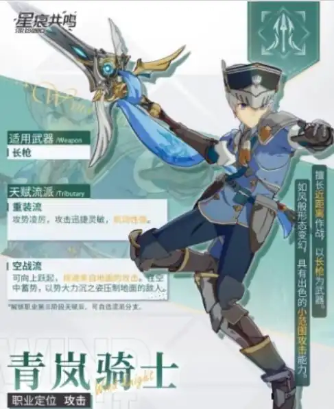 星痕共鸣青岚骑士介绍,在《星痕共鸣》这款游戏中,青岚骑士以其优雅且凶猛的战斗风格成为了许多玩家心目中的最爱,不仅以其长枪等武器的精湛技艺著称,更以其两个主要流派是重装流和空战流,为玩家提供了丰富的战术选择和战斗体验。