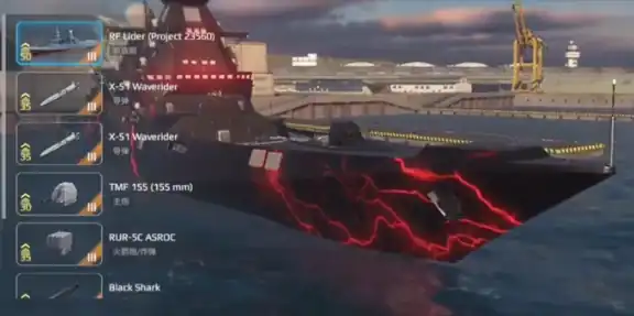 在火力配置方面有4个导弹槽位,还有两个火箭炮以及两个黑鲨鱼雷,另外还可以搭载一架直升机。单轮硬伤害就会造成20万,在防空方面还会有三个防空槽,但是整体的防控效果却并不是很出色。