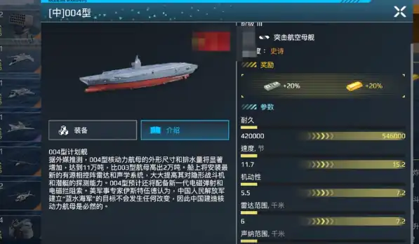 004:市场价格为2万黄金,可以配置两门火箭炮,一个轰炸机,一个战斗机。就好像是升级版的企业一样,各方面的技术属性都会更出色一些,基础的属性还有配置显然会比较均衡。