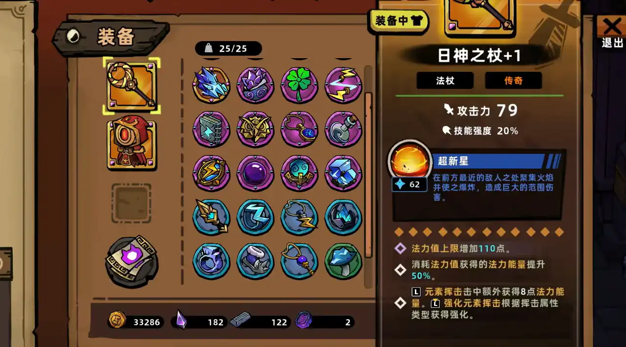对于很多新手玩家来说推图都是非常困难的一件事,玩家需要不断地走位躲避敌人的攻击,这里小编建议玩家使用月神之杖,当玩家主动开启技能之后能够变成免疫攻击的球形态,同时还能够对周边敌人造成伤害。