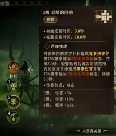 ③哀嚎的回响,可以对范围内的敌方目标造成毒素伤害,并有75%的概率施加2级攻击降低状态和2级专注降低状态,持续5秒。短暂延迟后,她再次对该范围内的敌方目标造成毒素伤害,并有可能进一步施加减益状态。这一技能不仅直接造成伤害,还能有效削弱敌人的攻击力和专注属性。④女王的惩罚舍得威能技初始充能时间为12秒,完整充能时间为20秒。在技能释放时,她能够移除所有友方目标身上的所有减益状态,并施加2级防御增加状态,持续10秒。同时,她还会将所有敌方目标身上的所有减益状态的持续时间延长5秒。这一技能在关键时刻能够为队伍提供强大的防御和辅助效果,同时进一步削弱敌人。