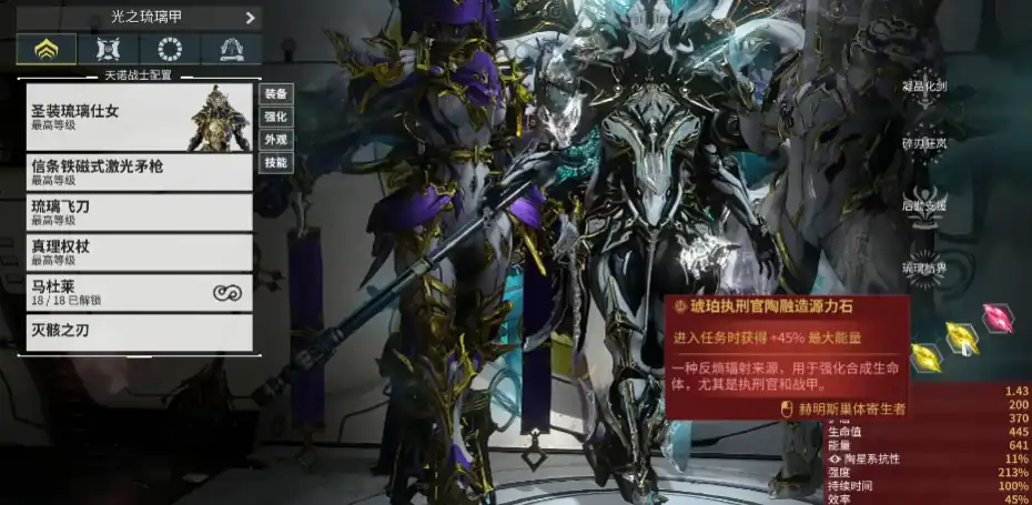 以上就是关于星际战甲手游玻璃甲技能效果与配卡的一番说明,玻璃甲需要范围和持续时间,来确保1技能的释放,能够击碎最大半径时的4技能玻璃墙,从而造成更大范围的伤害。终极配卡则是强化地图炮玩法,增加了黄色初始能量的源力石。