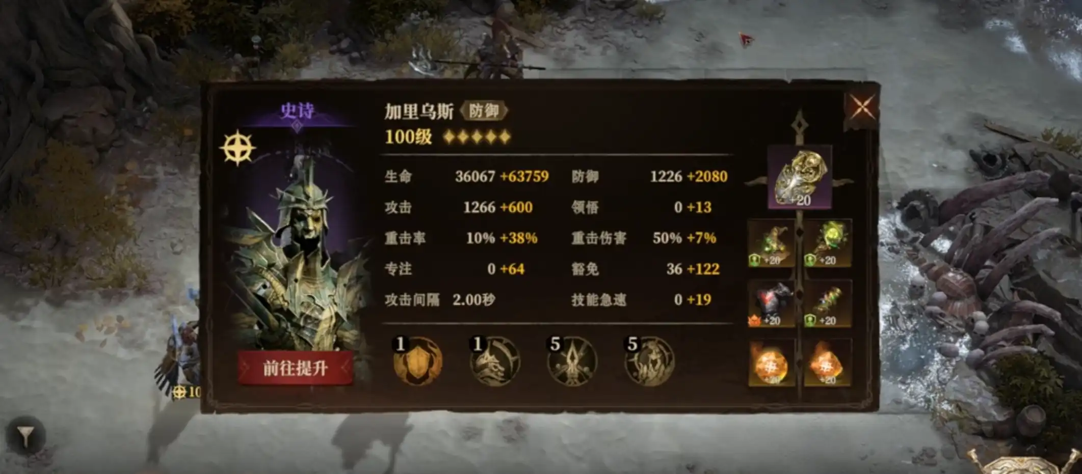 前排可以用加里乌斯:能移出自身大量负面状态,还可为友军施加高达基础防御值 600% 的治疗效果,可承受 BOSS 的大招攻击。光盾或奥德雷斯:可佩戴先祖套装增加防御能力,为队伍吸收伤害。