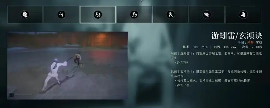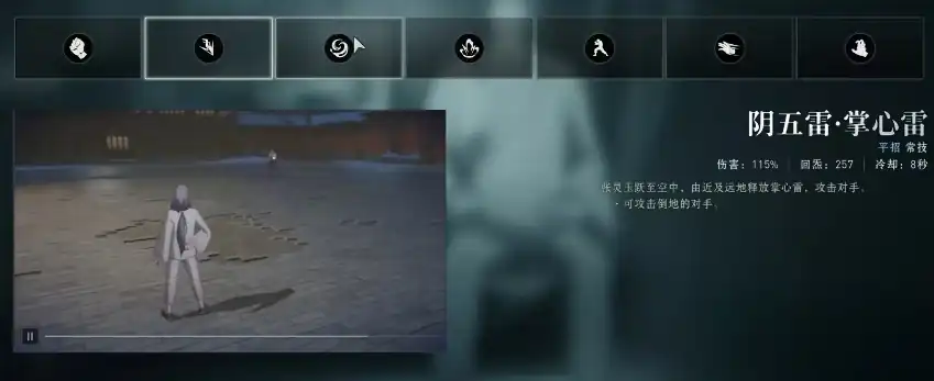 张灵玉的技能组合非常灵活,玩家可以通过合理的技能衔接来达到最大伤害和控制效果。可以先使用“游蚓之雷”接近敌人,然后迅速释放“阴五雷掌心雷”进行远程消耗,接着使用“北境苍潭”控制住敌人,最后通过“阴五雷掌”打断敌人的防御并造成击飞效果。