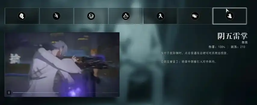 阴五雷掌技能需要在对手防御时通过普通攻击按键释放,张灵玉会使用掌中雷打入对手体内,造成击飞效果,不仅具有高伤害,还能够打断敌人的防御,使其陷入不利的战斗状态。