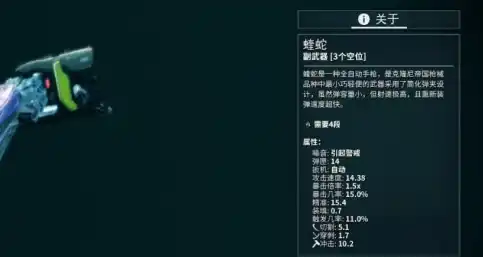 蝰蛇是一种弹速快、损害强的手枪,适宜与敌人近距作战。单发损害高,但炮弹耗费快。应用时要严格把控枪击节奏,避免因炮弹不足而陷入困境。高伤害在面对无法对付较难对付的敌人时很有效,玩家可以在短时间内对敌人造成致命打击。