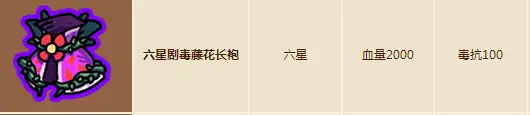 这一个道具会有2000点的血量加成,一旦在获取之后就可以迅速的提升玩家的生存能力,让玩家在战斗的过程中就能够有机会承受更多的伤害。毒抗属性是100,在面对毒属性攻击时就能有效减少所受到的伤害,减低负面影响。另外还可以增加50点暴击伤害,有效提升在战斗过程中的伤害数值。