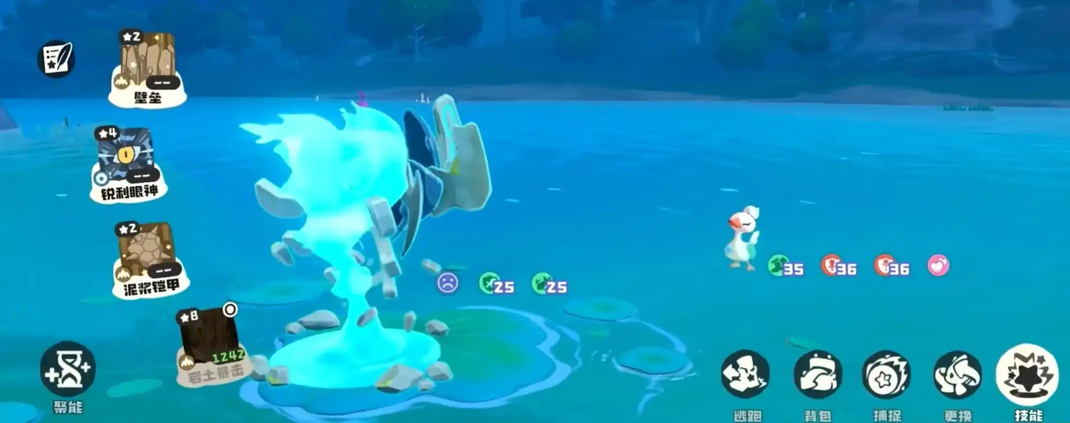 在降低能量方面,巨灵石还有很多其他的技能效果,例如降灵,对敌方添加上降灵标记,敌方每次入场都会失去一点能量。恶作剧,使对方失去4点能量,应对时,使敌方失去8点能量,应对的是防御技能。伤害类型的技能也比较充足,例如背袭,造成魔法伤害,如果对方的能量为零,那么造成的伤害直接翻倍。气势一击,如果上回合应对成功,那么本技能的威力直接翻倍,否则会重置。另外该精灵在防御方面也比较出色,自身具有泥浆铠甲,提升50%物防和物攻。流沙,降低敌方50%速度,应对时降低150%速度,应对的是防御技能。