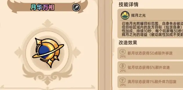 这就是一把6星武器,属于物理攻击类,一般基础攻击间隔大概是0.5秒,并不存在被动效果。效果并不是很复杂,例如可以召唤月光照耀,此时就可以给目标内所有的人就能得到双倍属性加成,具有持续10秒的效果。基本上每一个玩家都能够获得对应的增益效果。
