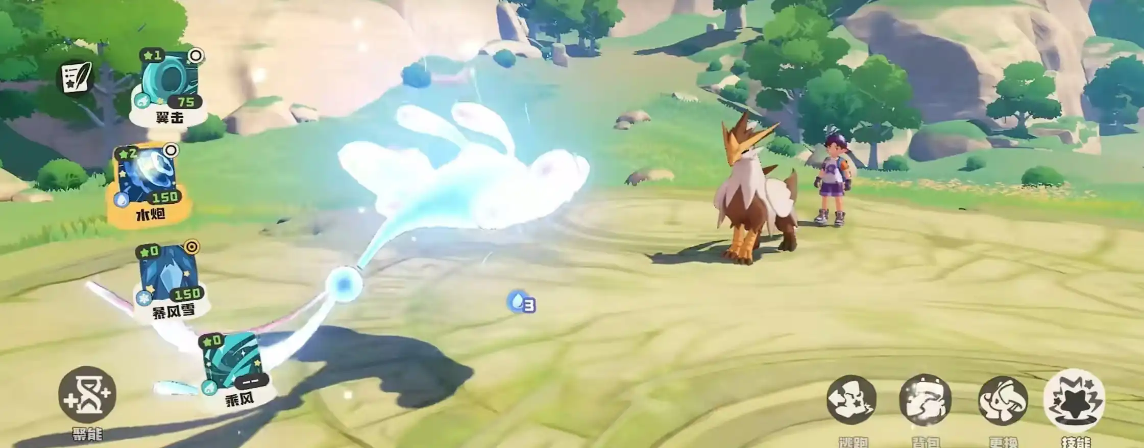 飞吻能够对敌方精灵造成魔法伤害,灾厄是对自己造成物理伤害,但在应对时改为对敌方造成物理伤害,应对为状态技能。钢钻,造成物理伤害,威力在计算的时候等于两侧技能的威力之和的1/3。风起,这是一个比较特殊的技能,可以带来一个印记,在率先出手时伤害提升。水光冲击,对敌方精灵造成魔法伤害,因为是高级技能,所以伤害很可观。天洪,造成魔伤,应对时,技能能耗降低6点。