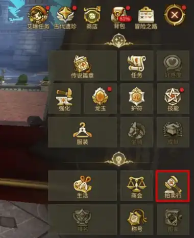 首先拍卖行的解锁方法是玩家等级达到了30级,这样在商会按钮的旁边,就能看到拍卖行的按钮亮了起来,这时候点击就可以进入,点进去之后,大家可以看到里面的内容非常丰富,主要是一个让玩家们来购买或出售稀有道具的平台。