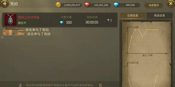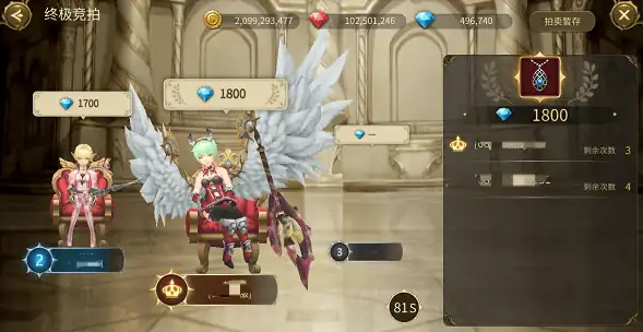 报名时间有五个半小时,大家可以在这段时间内考虑需不要这件物品,在时间结束后就会开始拍卖环节,大家可以陆续给出自己能出到的最高金币或钻石数,最后价高者就能得到这件道具。