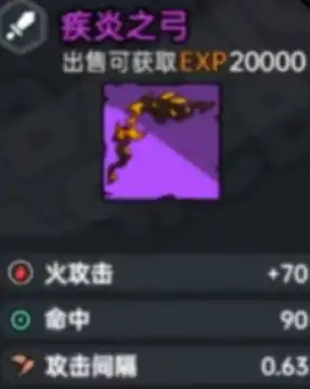 疾炎之弓:在游戏中一开始可以用来刷boss,例如对付牛头人,还有石头人,具备较高的输出性能。让玩家在战斗的过程中就可以变得更加的轻松。