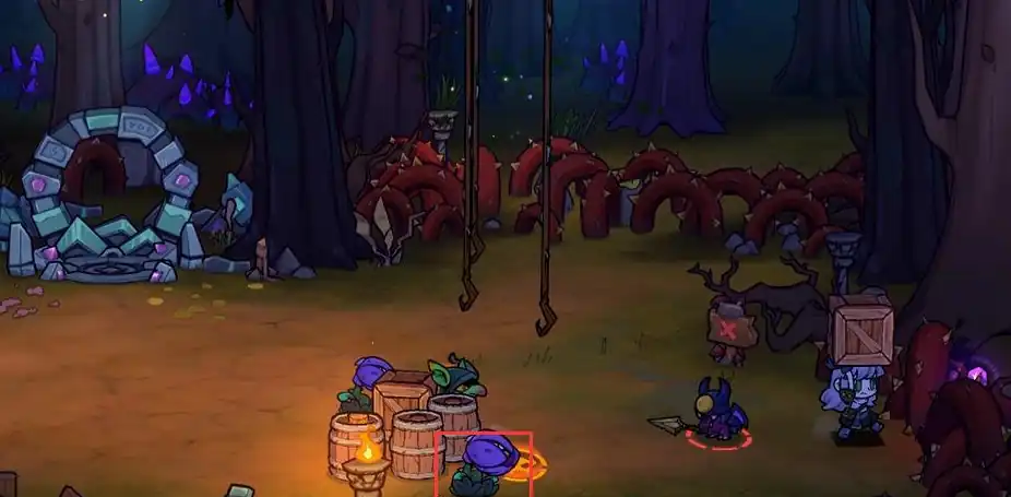 进入第一个关卡,能看到一群普通怪聚在一起正在交谈,这里推荐使用炸弹道具直接炸,或者用旁边的箱子炸药桶渣,一下能清理掉好几个,继续向前走看见有拿着刀的小怪,靠近后闪避就能规避伤害,看见下图的这种花可以拾取一下,后续扔到怪物身上能形成输出值,看见有拿着弓箭的小怪需要注意它们会远程攻击,不过范围不大,看见有箭过来躲一下就行,第一关结束,宝箱中的武器可以根据自己的习惯来选,不知道选啥就选品质高的;