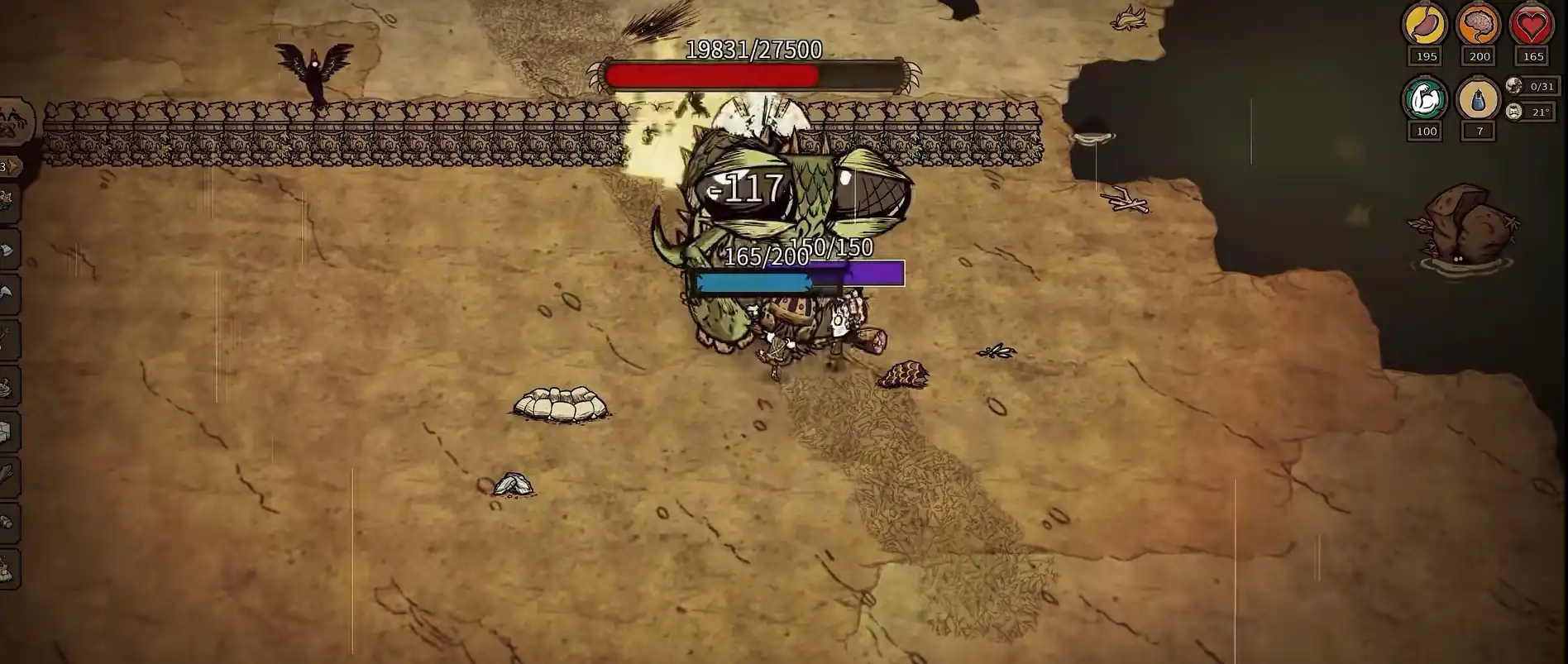 游戏的BOSS血量分别是:龙蝇–27500点血量;独眼巨鹿–4000点血量;熊獾–6000点血量;蜂后–22500点血量;独眼巨鹿(冬季版本)–8000点血量;冰雪巨人–12000点血量。其中的龙蝇、蜂后、冰雪巨人的血量都是破万的,说明它们打起来会比较费力,为此小编就来介绍一下它们的打法。