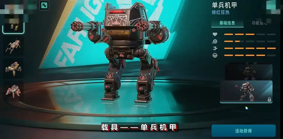 武器就是两个加特林,可以发动远距离的攻击,但是散射比较大,持续开火时间越长则射速越高,而且攻击范围也会越来越精确,而且还附带一个突进的技能,也就是可以在载具快被打爆的情况下快速位移到有掩体的地方下车。