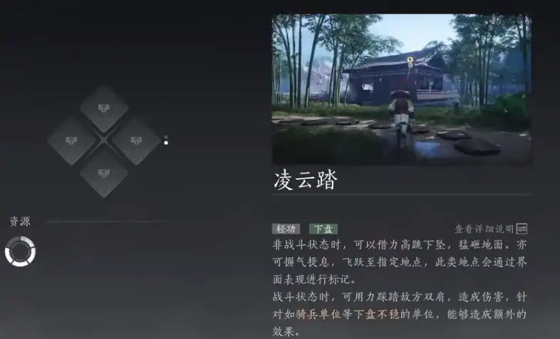 想要在室内做出多段跳跃的动作,这其实和一个奇术【陵云踏】有关系,这个奇术没有空间的限制,而且只要使用就能原地起跳。这个奇术在将军祠底获得。到达将军祠后,会遇到一个小孩需要你帮忙拿出掉到洞底的球,利用Q技能下跳砸出地洞的入口,根据指引来到洞底获得这个奇术。
