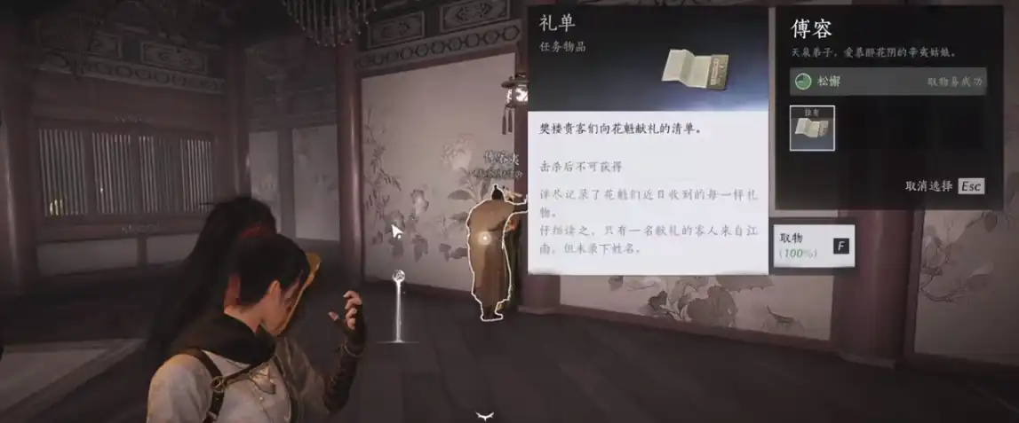 第五个线索:这个线索也是在二楼的屏风附近,找到小哥哥npc傅容,这里还需要用到奇术摄星拿月从傅容身上拿到线索;