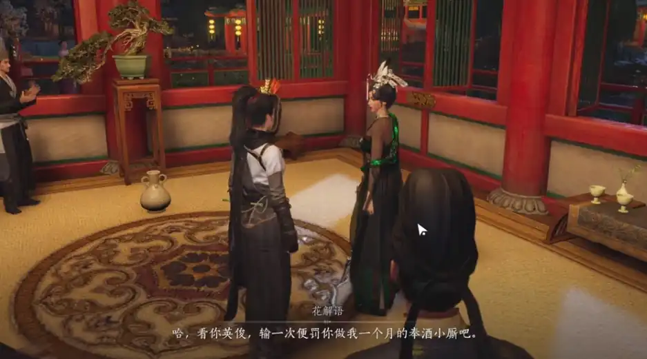 第二个线索:同样在一楼直到npc花解语,触发对话完成她提出的小游戏即可获得;