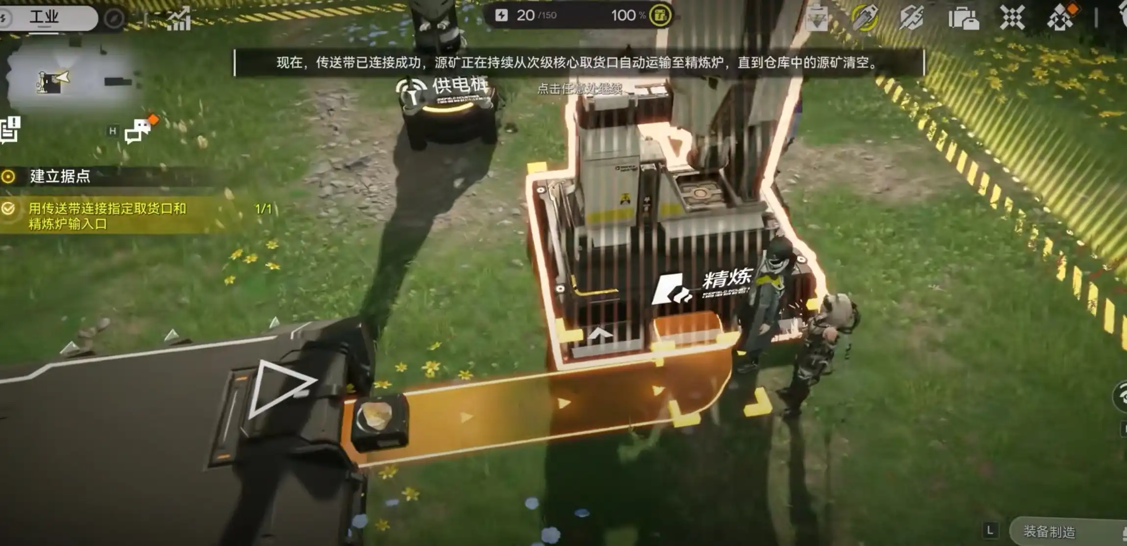 基地建设方面,要掌握工厂建造规则。产物和产出是线性关系,产线饱和或产物匀速移动时,产线长度不影响传输效率,关键在于产物占流水线的格子数。设备生产效率取决于输入原料比例与产物配方比例的一致性,当所有原料输入饱和时,效率达到最大值,此时输出效率仅取决于端口数。建造时,要先建立完善的发电装置流水线,确保所有建筑都能正常充电。像精炼炉、粉碎机等制造机器也不可或缺,可用于强化基础资源,合成高级资源。记得在终端附近放置取货口并连接传送带,方便一键拾取制造好的材料。
