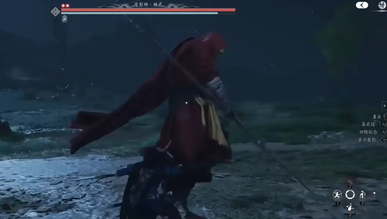第一阶段:皮影师相对简单,攻击时会有一小段格挡时间,你只需根据屏幕提示的按钮使用闪避即可轻松躲避。
