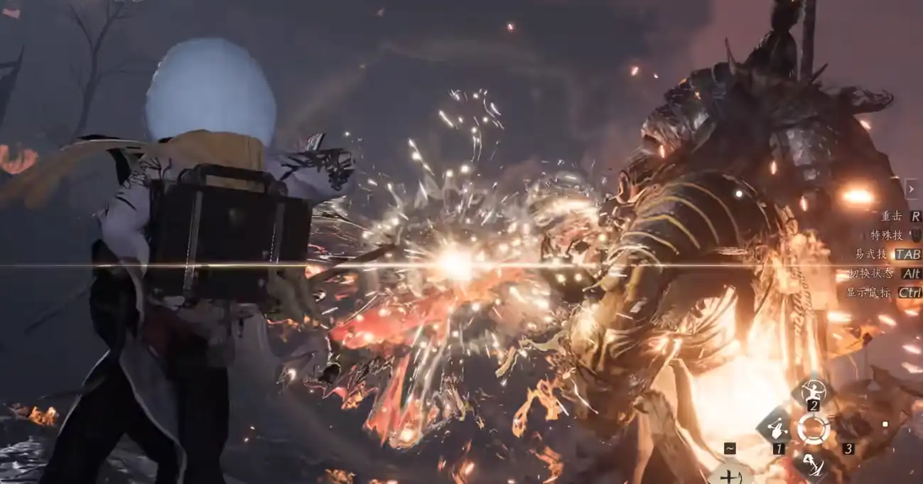 叶万山的第一个红色招式是从上到下的重击,这时只需要等待刀刃下落后进行反击即可。当你成功消耗掉他的第一个血条后,叶万山会下马并回满血。此时,他会使用一个黄色招式,屏幕会提示这个技能无法卸势。面对这个攻击,玩家可以选择闪避,躲避掉强力的冲撞和爆炸。
