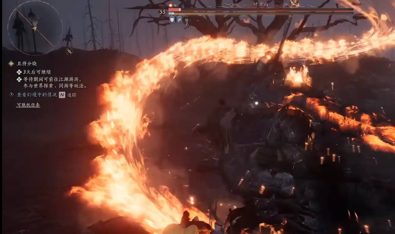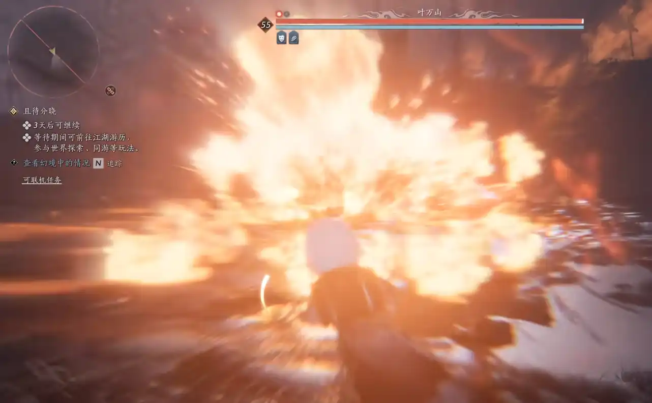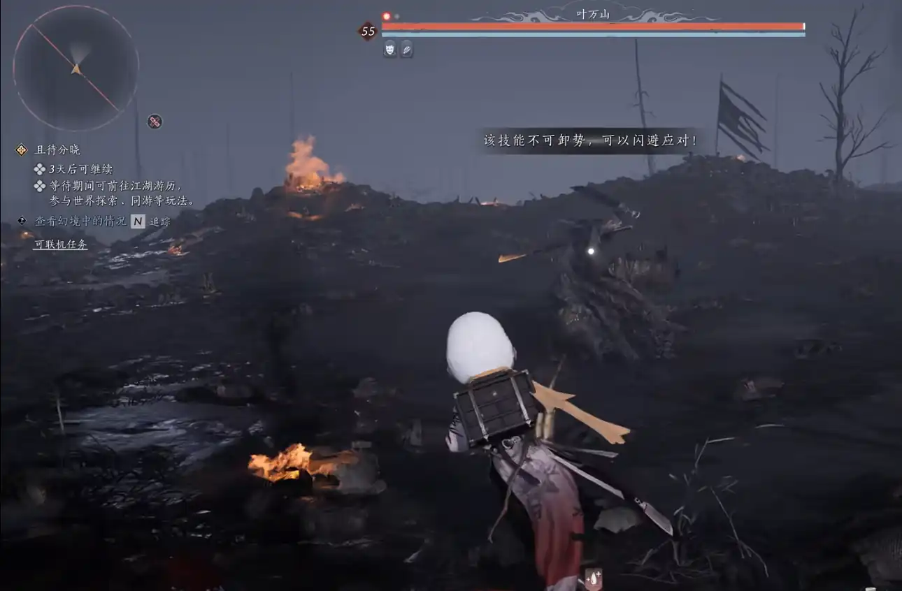 在战斗的最后阶段,叶万山会施展一个强力的闪击技能,这时需要玩家使用凌云踏来闪避。如果闪避不成功,玩家可以迅速向左边闪避,这样就能避开他第二次的攻击。