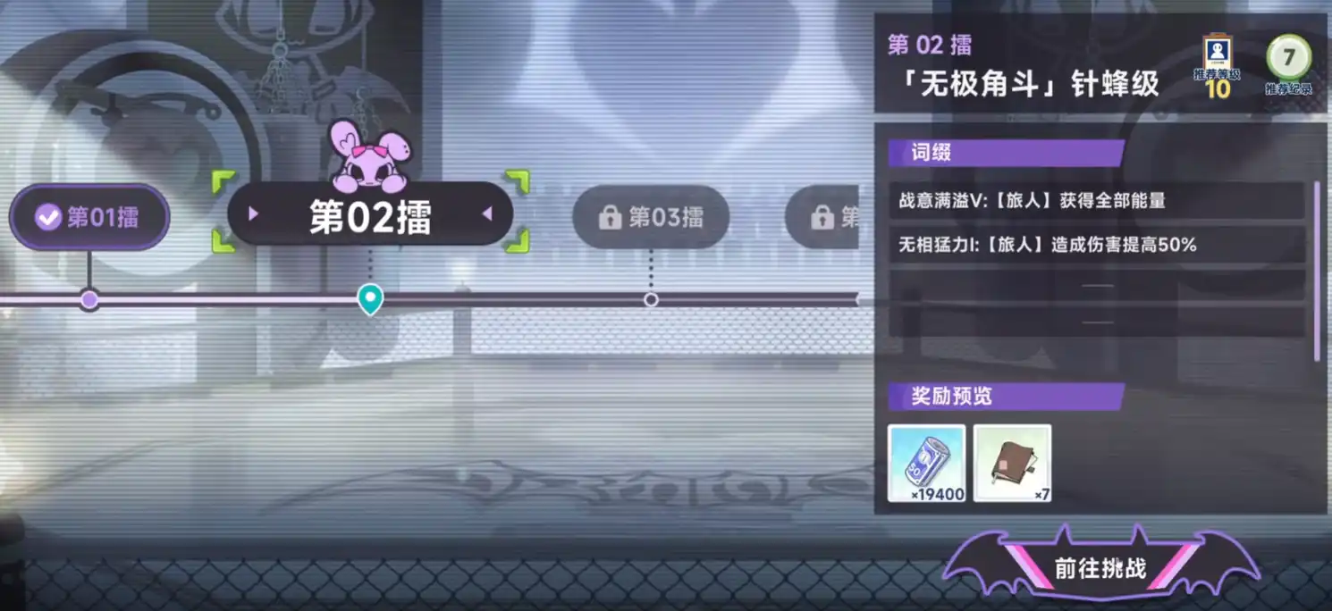 然后每个关卡都有独特的词缀,能够增加你的能力。我们可以根据这些词缀合理搭配上阵人员,比如战意满溢,又可以让所有队友获得所有的能量。这样就能直接上场后可以使用大招或者技能,也有无限猛力。可提升50%的伤害,那时候就建议上阵一些输出角色。