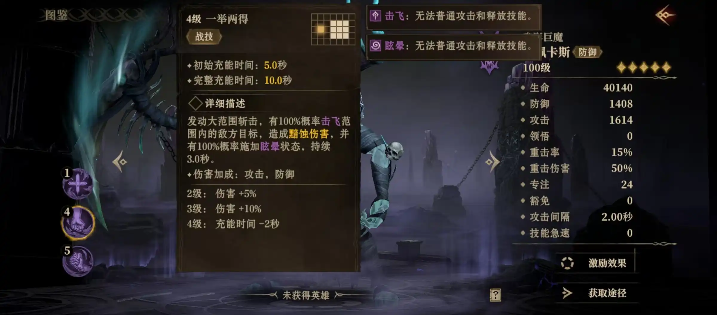 首先来看一下幽影巨魔所具有的被动顺手牵羊,效果是在敌方目标受到治疗时,自身也会受到该治疗量50%的效果,但是存在内置冷却,一定时间内只能生效一次。战技一举两得,发动一次大范围斩击,100%几率将施法范围内的敌方目标击飞,造成黯蚀伤害,还有100%几率施加眩晕状态,持续三秒钟。对方在被击飞之后,是无法普攻和释放技能的,眩晕也是无法释放普攻和释放技能,所以控制效果非常出色。