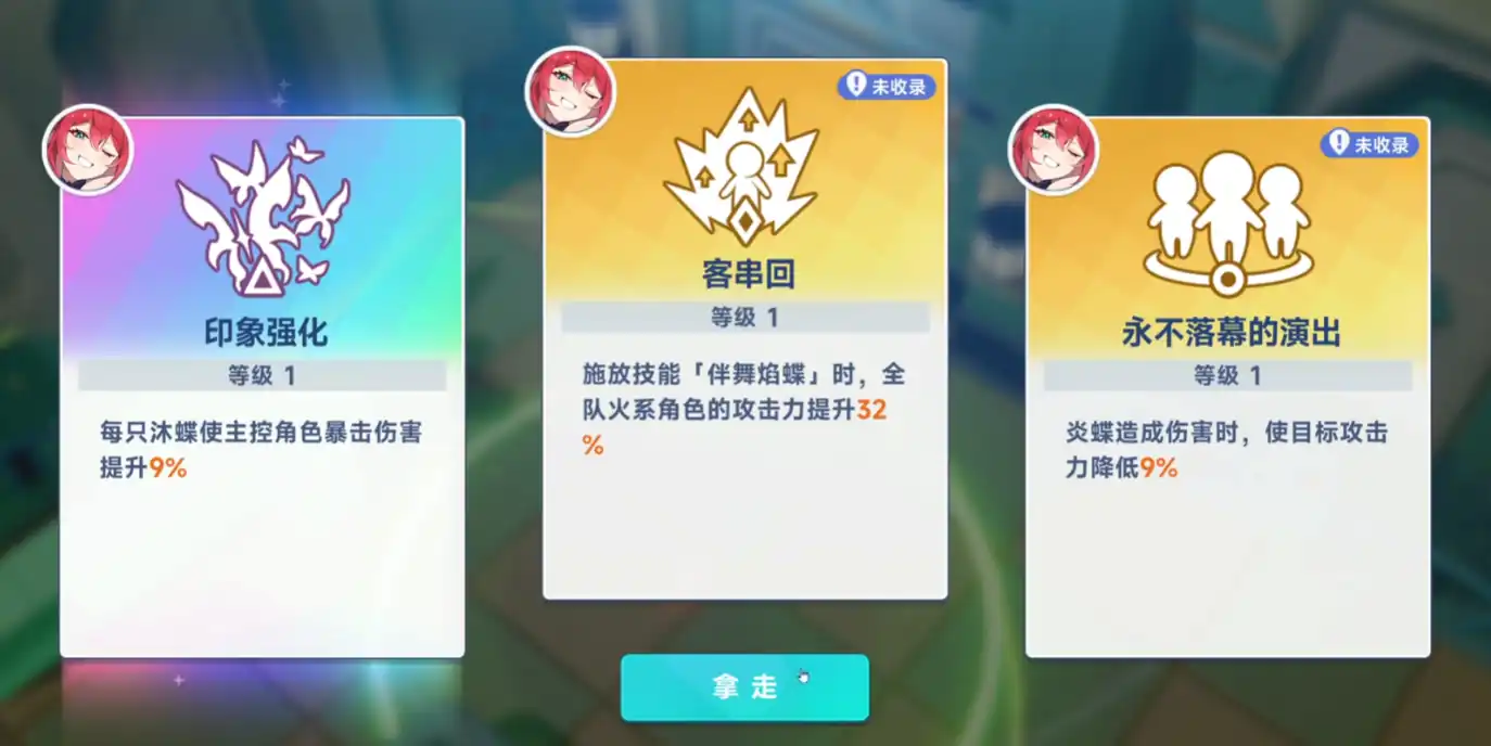 我们顺利升级之后就可以选择更好用的buff,如客串回。你将技能释放出去之后就可以让所有队友的攻击力提升接近1/3,这样的伤害加成其实非常高。如果用其他buff的话,那所提升的伤害就比较少了,而且又有一定的阵容限制。