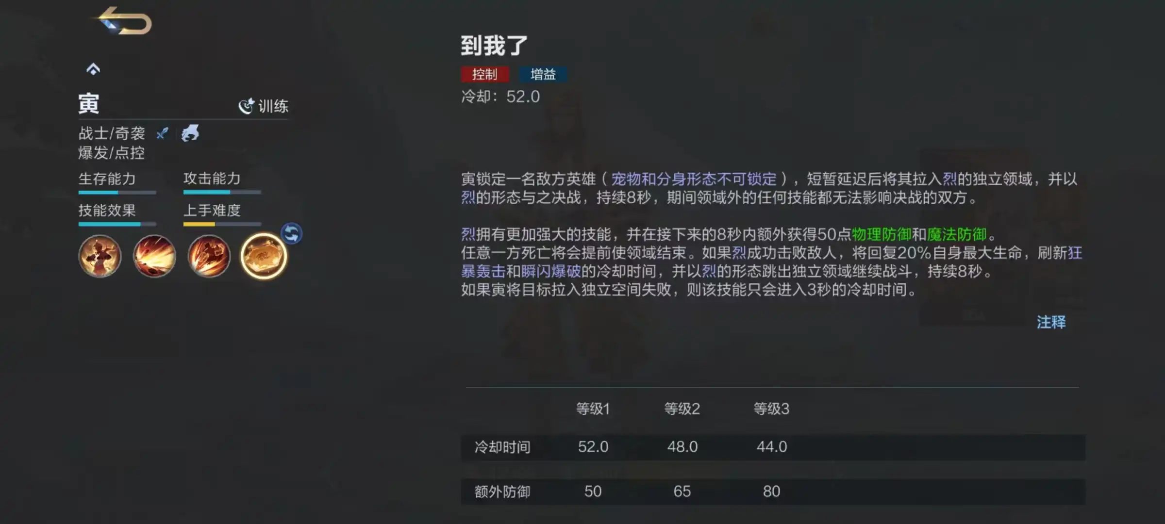 决胜巅峰设计出来的寅这名英雄非常有中国风的特点,自身外形和皮肤都有着格斗家的风范,而且是一个具有一定上手难度的角色,今天小编就来详细介绍一下决胜巅峰寅怎么玩。临时属于战士类型,擅长爆发和点控,如果能够在打野路玩出优势,可以带动全场的节奏,所以是一个很适合喜欢操作的玩家选择的人物。