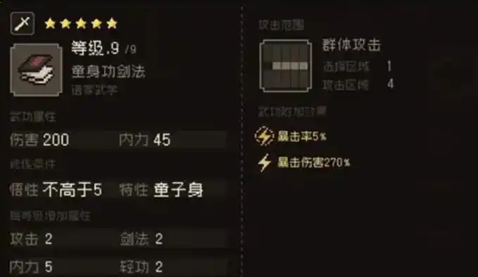 如果将童身功和亢龙有悔组合在一起,还可以得到“见龙在渊飞龙在天”,提升20点拳掌伤害,10%攻击力加成,5%暴率加成,当敌人身上存在内伤buff的时候造成伤害会进一步提升。