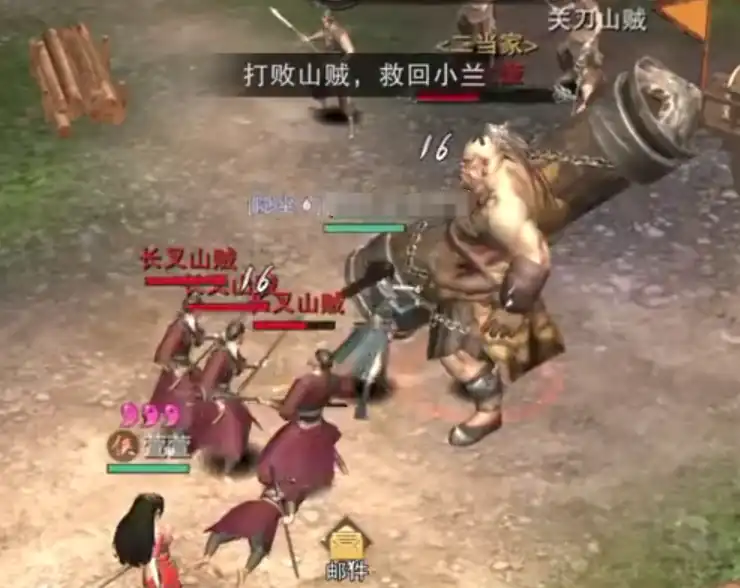 在击败之后会解锁侠客系统。之后看到山贼想要将小兰给带回山寨,我们需要上前阻止。这是一场BOSS战,咱们需要将山贼的二头目给击败才行。这个敌人总体不算难,它只有血量比较厚。在击败后山贼直接跑了。