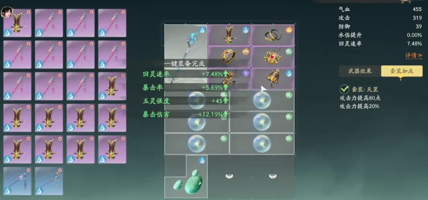 然后这些装备也可以提升等级,等级提升后,各方面的攻击或者防御属性也会对应上升。接着还会解锁新的词条属性,有暴击率,暴击又或者防御等属性。总之我们可以根据角色的特点去选择不同词条。套装方面的话,尽量选择一些可以增加大量攻击力或者伤害加成的套装,如此就能轻松消灭怪物。