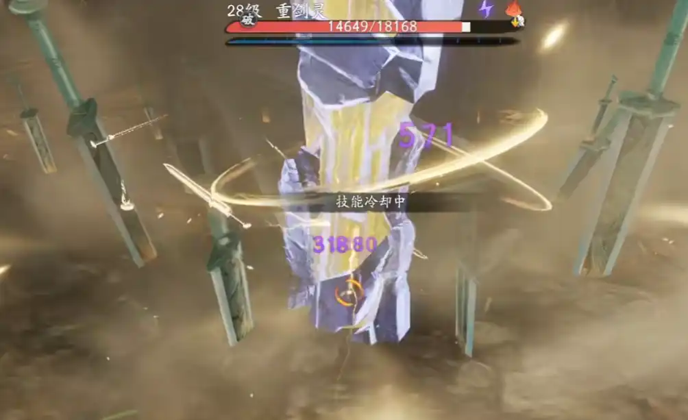 还有一把充满各种怨气的剑灵,他的破风速度特别快。大家要让他短暂休息,再选择上前攻打。则建议用雷属性伤害,就能够快速破掉它的护盾。从而再切换成其他角色放大招的话,伤害就会更高。以后也要注意技能冷却时间,不要随意释放。