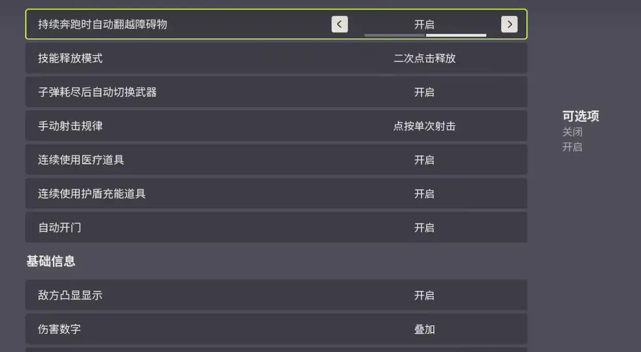 在这款游戏中玩家经常需要奔跑翻越障碍物,但是很多玩家经常不小心进行失误操作,这里小编建议玩家将游戏中的自动翻越关闭。这样就能减少操作失误。