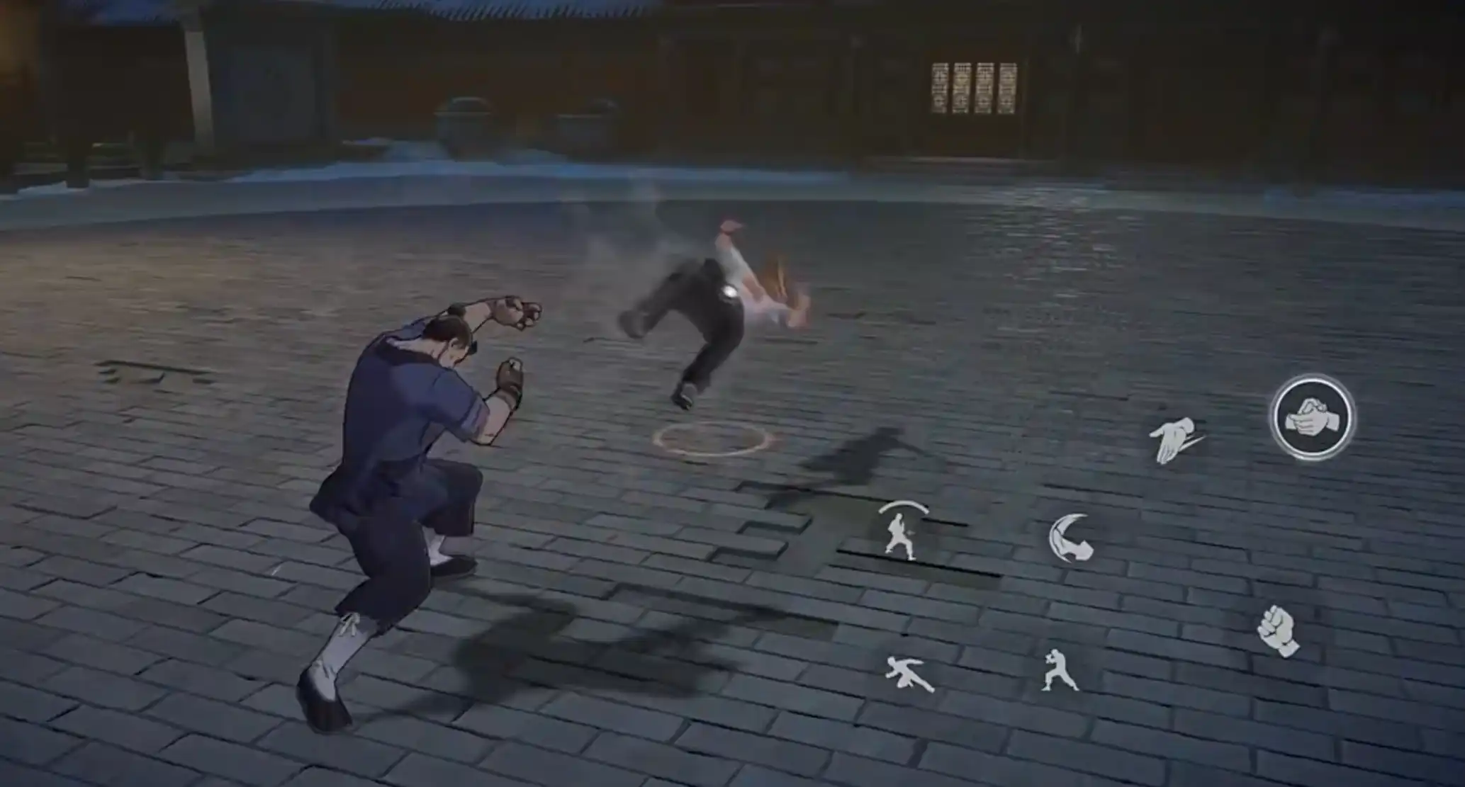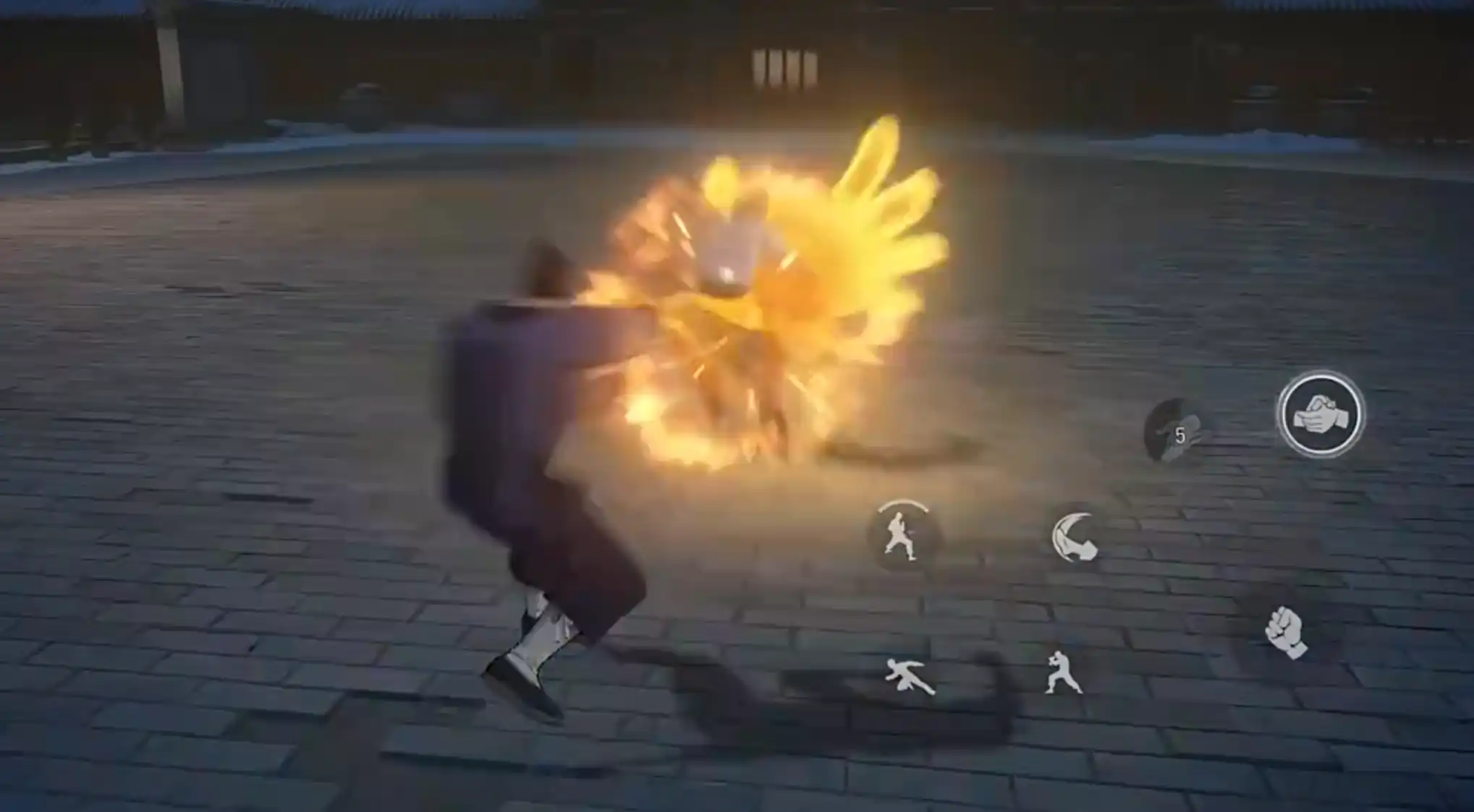 3、平招—穿云拍案:荣山以按掌试探攻击。若按掌命中,则追加三次冲拳攻击,最后以一记穿云掌击飞对手。技能释放后,荣山进入短暂的【金光覆映】状态。