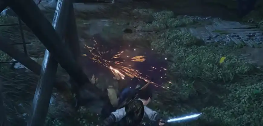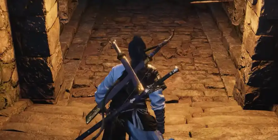 点燃弓箭,烧掉藤蔓后,你跳入了枯井,竟发现一个地下宫殿。在这里,你将遇到一群无面人——这些神秘的存在,究竟是什么样的过往让他们如此痛苦?随着剧情的推进,你逐渐了解了无面人的历史,原来他们曾是英勇的少年英雄,受命以契丹人的模样潜入敌营,却因任务失败而被迫终老于这个幽暗的地宫中。通过无面人视角的幻境,你得知他们的悲剧,既是忠诚的牺牲,也是错综复杂的命运安排。